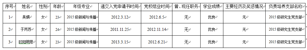 为了加强对发展党员工作的民主监督,保证新发展党员的质量,现将发展对象吴娟等三位同志的有关情况公示如下: