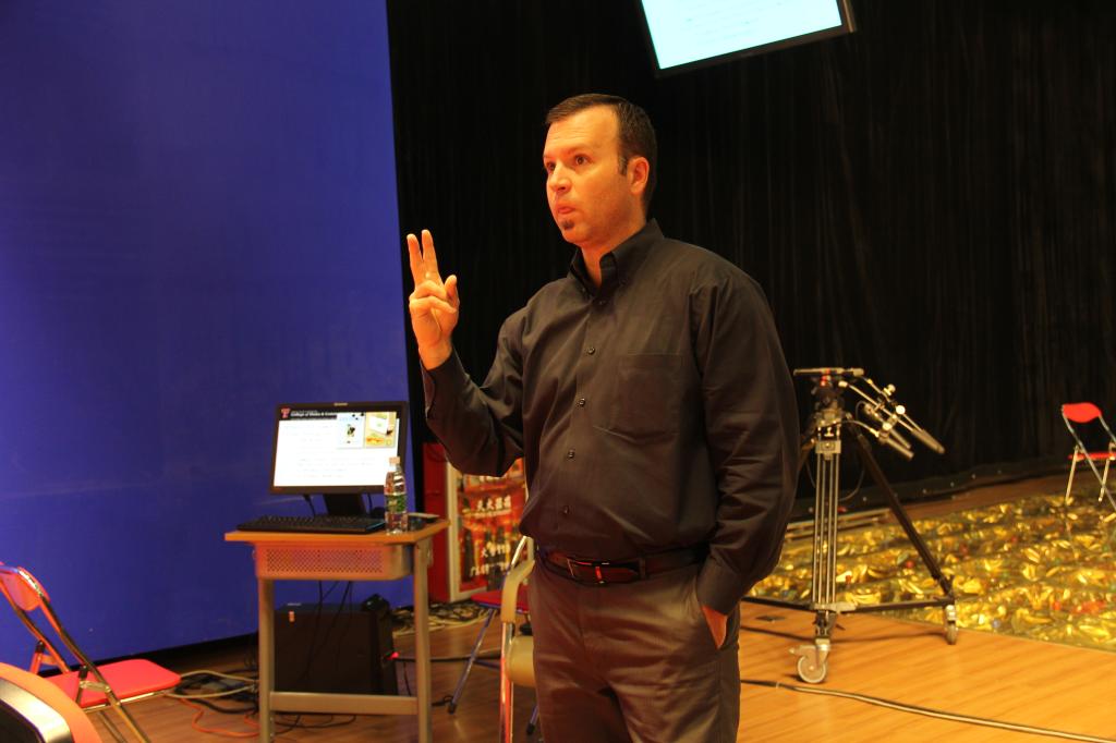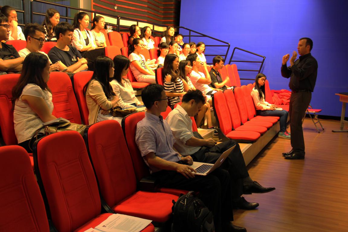 本网讯 10月19日下午,美国德州理工大学媒体与传播学院研究生院副院长Coy Callison教授和助理院长张威武教授在南校播主演播厅为我院15级研究生做了专题讲座,并向各位学生抛出橄榄枝,欢迎其前往德州理工大学交流学习。