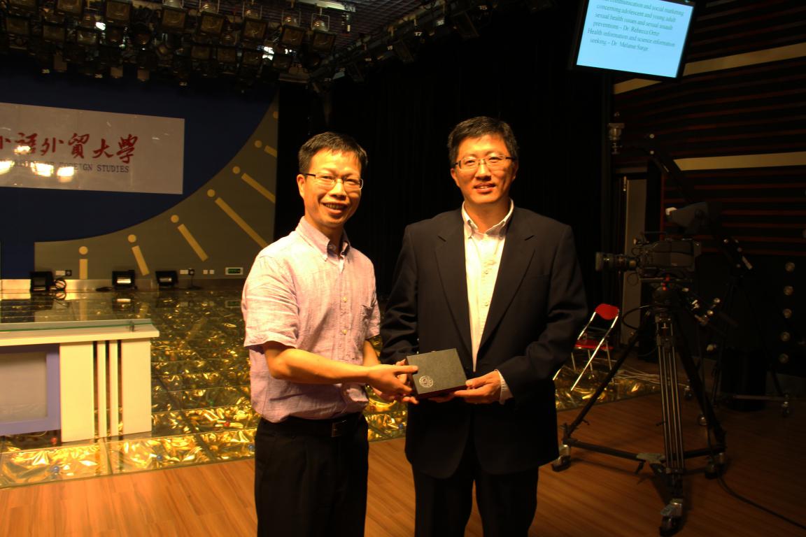 本次讲座由新闻与传播学院副院长何国平教授主持。在讲座的最后,何国平教授代表全院师生向两位教授赠予礼物,并向其表示感谢。