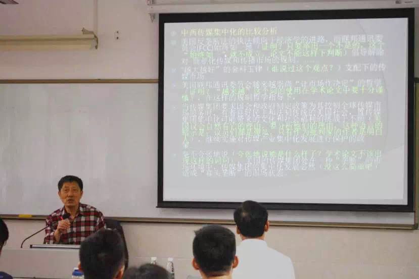 随后,陈力丹老师就研究及论文选题方面给出了自己的看法。他以社科基金及人大新闻学院硕博学生的选题作例子,提出选题要有前瞻性,而且选题应该要相对小,只有口子开得小,才有可能把问题研究得更深。作为新传研究者,在写论文时要避免将论文写成教材、宣传及工作报告,审视所用概念是否严谨,研究方法是否合理有效,论证逻辑是否严密,论据是否权威可靠及新鲜客观。