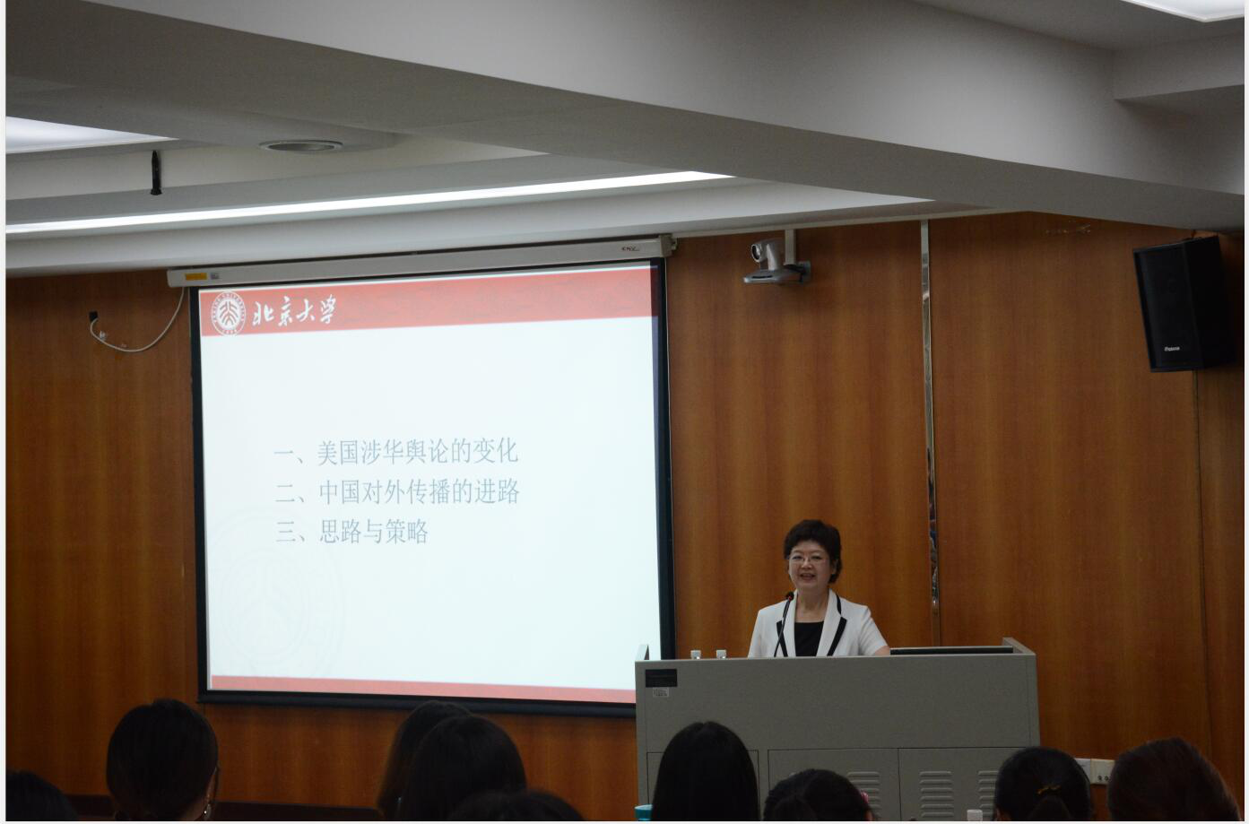 首先,程曼丽教授从美国涉华舆论的变化、中国对外传播的进路、和相关应对思路和策略三个方面向我们论述了当今中美两个大国博弈的情况下中国的对外传播策略。程曼丽教授在小布什--奥巴马时期美国政府对话舆论变化时着重指出,目前美国的对华政策无论积极或消极与否都是经历了很长时期的政治考量的成果,其对华政策的形成绝非一朝一夕之事。程曼丽教授在说到美国国家战略传播体系的特点时,特别指出美国一切对华传播战略的转变皆来自国家利益和国家意志的驱使,这一点足以成为我们考虑中美两个大国之间的传播关系的基石。
