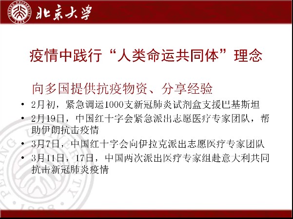构建“人类命运共同体”的意义,既有现实针对性;同时倡导求同存异,共谋发展,反对孤立静止看问题,突破了非此即彼、二元对立的思维模式,具有科学的方法论支撑。在本次新冠肺炎疫情当中,中国力求在“人类命运共同体”的框架下进行对外传播,积极及时地与国际社会分享信息、联手抗疫;更在国内疫情控制获得进展后向多国提供抗疫物资、分梦想经验,如此患难中形成的合作机制,将会在公共卫生领域发挥更大的作用。