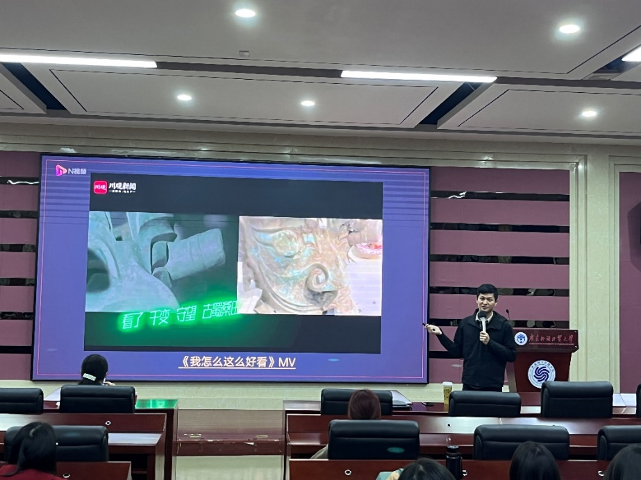陈伟斌老师凭借着自己多年制作时政类短视频的工作经验和丰富的阅历,给同学们带来了一场内容丰富多彩、语言生动幽默的讲座,让同学们受益匪浅。