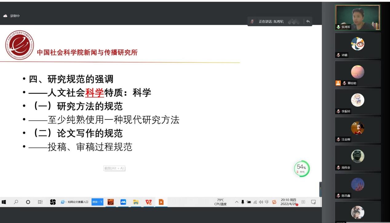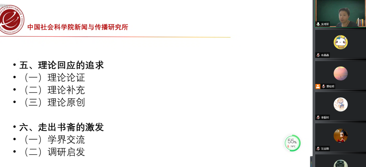 4月28日,《新闻与传播研究》执行主编、中国社会科学院新闻与传播研究所研究员、博士生导师朱鸿军老师为广外新闻与传播学院的同学们带来了一场主题为《青年学者的学术规划》的线上讲座。