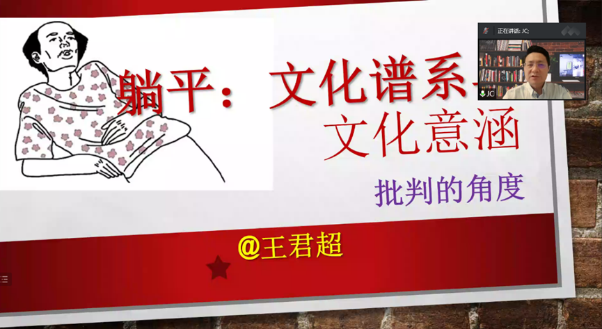 2022年5月27日,清华大学新闻与传播学院长聘教授、博导王君超教授为广外新闻与传播学院的研究生同学们带来了一场主题为《躺平:作为亚文化的文化意涵》的线上讲座。王君超教授的演讲内容主要包括以下五部分内容:躺平是什么、躺平的来源、躺平的文化谱系、躺平的亚文化分析、如何评价躺平现象。