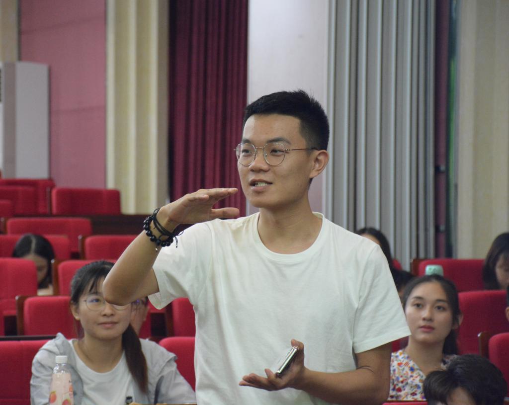 随后,中心主任全燕教授、教务秘书范老师和辅导员王老师与2019级研究生进行了简单的交流对话,2019研究生蔡晓鑫同学对2019级研究生培养方案上的必读书目提出了疑问,全燕教授亲切的回答道:“要紧跟导师的指定方向去读书,读自己感兴趣方面的书目比较重要。”此外,全燕教授还介绍到小语种的同学出国实习会尽量安排在对口对象国,并能进入当地的媒体实习。