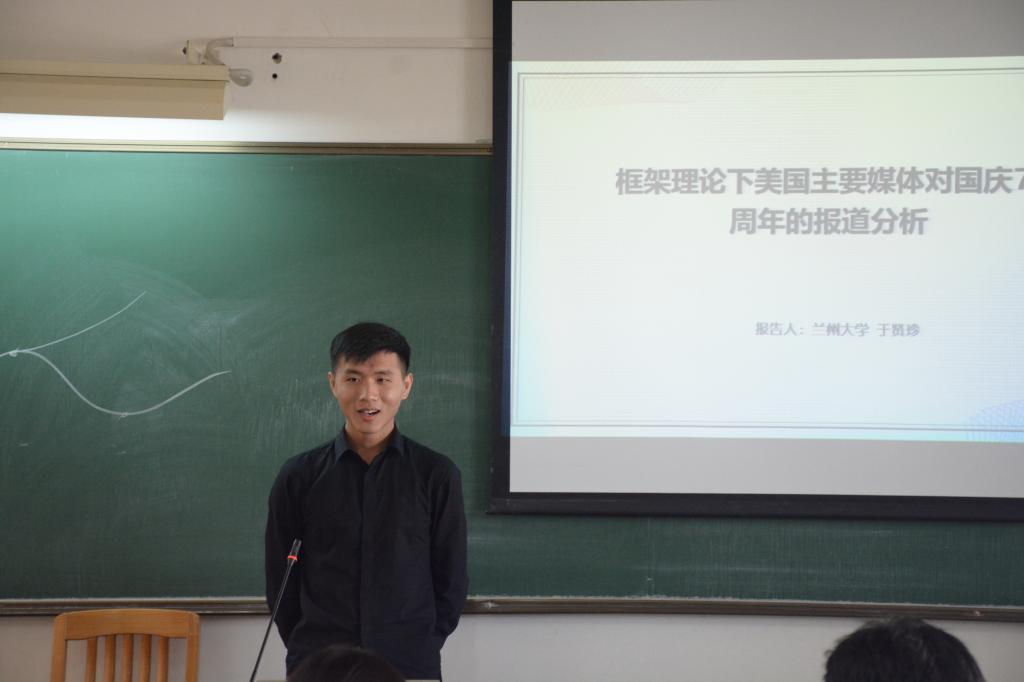 论坛进行到了下半场,师生们的研讨依旧热情与精彩。兰州大学的王桂棋同学以“媒介冲突视角下主流英语国家的媒体对香港暴乱的报道分析”为题,认为香港事件存在警方与暴力抗议者、中央控制与香港自治这两对冲突,围绕英美澳媒体对冲突关系怎么构建议题这一问题,通过内容分析法和话语分析法对6-10月代表性英文媒体的报道进行分析,得出美媒的报道泛娱乐化、英媒有一定政治倾向、澳媒相对客观这一结论。